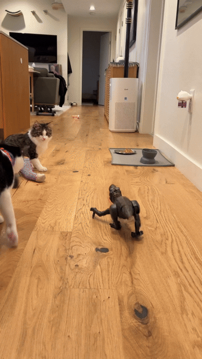 Watch your furry friends join the Jurassic adventure! This T-Rex’s lifelike movements and glowing lights make it an irresistible playmate for curious cats and playful pups.