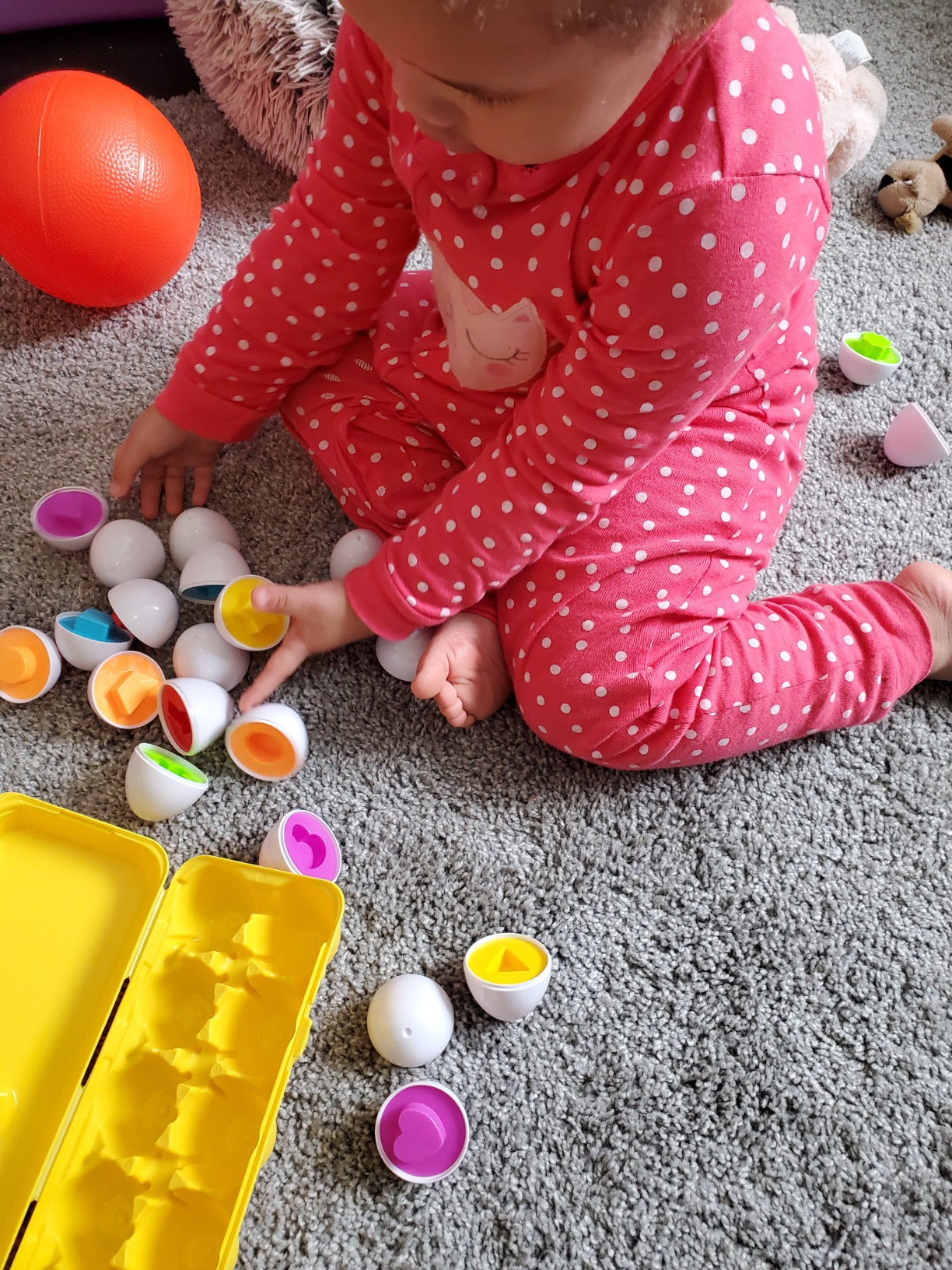 My little one loves these eggs! They enjoy cracking them open and finding new colors and shapes. Now they don't have to crack real eggs anymore haha