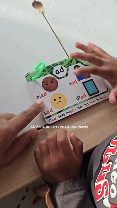 "This kit has been a lifesaver for our reading routine. My son is actually excited to learn now thanks to the cool flashcards and colorful visuals. It’s boosted his reading skills big time, and I couldn’t be happier!"